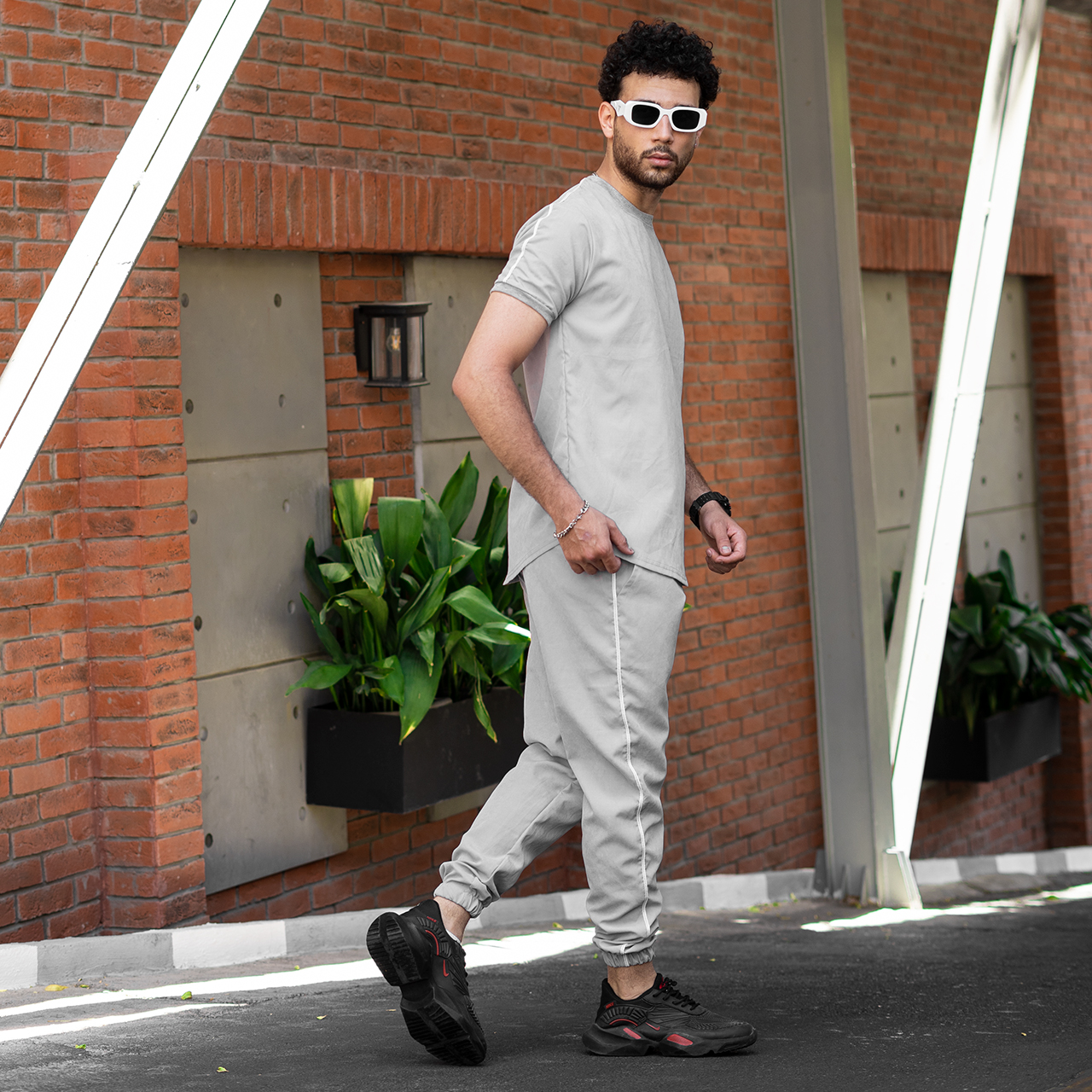 ست تیشرت شلوار مردانه طوسی مدل uota